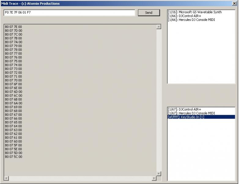 I ran miditrace (screen grab below) this was the result of me moving the slider from its absolute top position downwards around 40% of the way.