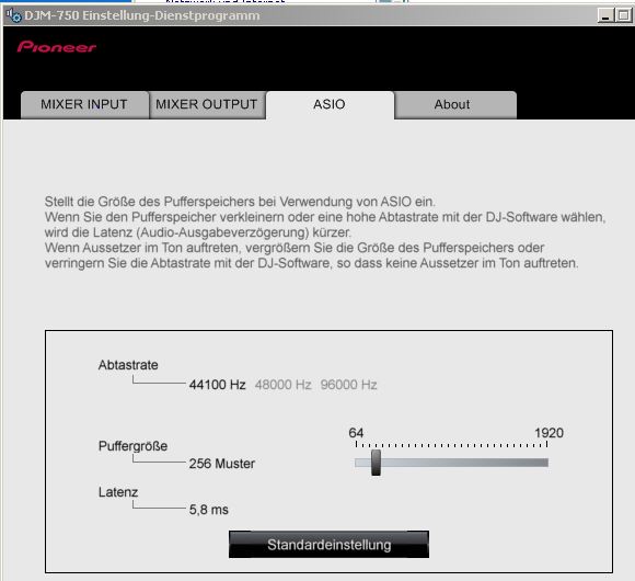 so wie auf dem ersten bild funktioniert es ohne zu knacken und ohne aussetzer (die quali überzeugt mich aber auch nicht 100%) die samplerate kann ich im pioneer treiber auch nicht verändern. legt vdj das fest; diekt nach der treiberinstallation liess sich das verstellen. nachdem vdj einmal lief ist das so festgetackert.