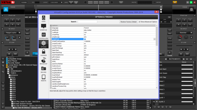 Un truc auquel il faut faire attention, si la barre des langues (sous Windows) est active et que l'anglais est en 1er, VDJ tiens compte de ce paramètre !