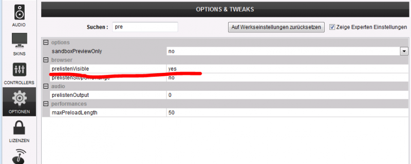 settings/ (advanced )options/ prelistenVisible auf "yes"