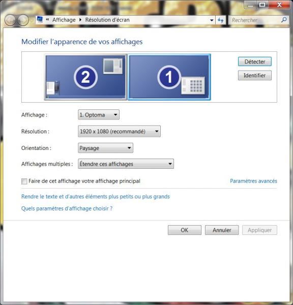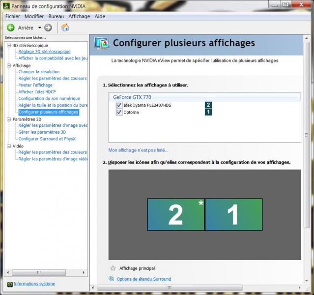 bonjour moi je ne suis pas d'accord avec ta configuration je vois que l'écran 1 et le vidéoprojecteur ce devrait être le deux mais ci sa te convient