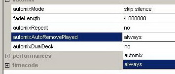Wenn bei "automixAutoRemovePlayed" yes eingestellt ist . . . . .