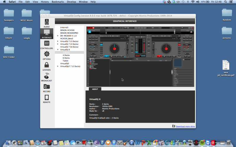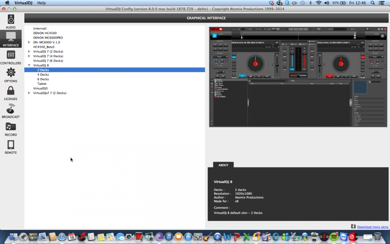 i can open vdj and log in but it does not display the player skin,i'm on a macbook pro.