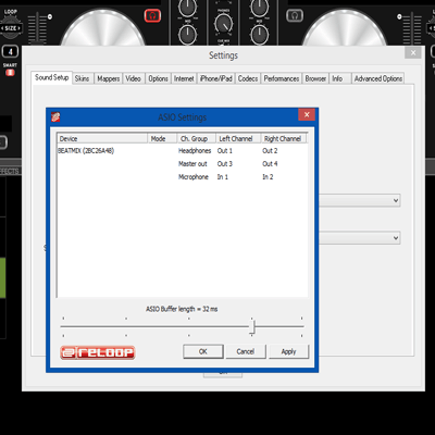 Master - Reloop Asio - Chan 1&2 bzw Out 1&2