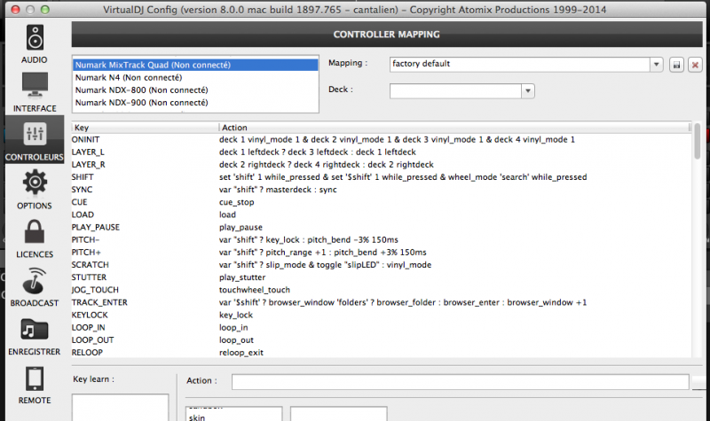 salut ya tu quelqu'un qui peu me dire comment faire pour mapper un mixdeck quad numark avec virtual dj 7.04 mac et ou trouver le ficher pour mapper