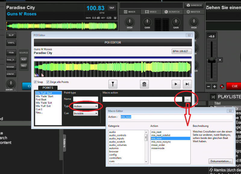 Dort legst du einen Cue Punkt an, an dem du die Action ausführen willst.