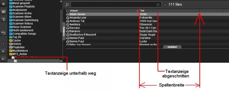 Die Kopfleisten (Überschriften) in den Browserfenstern sind unvollständig bzw. gar nicht mehr beschriftet. Wenn ich die "unbeschriftete" Schaltfläche anklicke, wird neu sortiert. Das geht also noch, ist eben nur wie Schattenboxen. Titel, Interpret, BPM sind sichtbar, andere nicht (Jahr, gespielt, usw.).