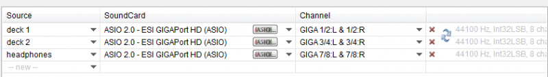 Getting closer. When I use ASIO, deck1 and headphones work correctly, deck 2 plays through channels 3 & 4 AND 7 & 8.