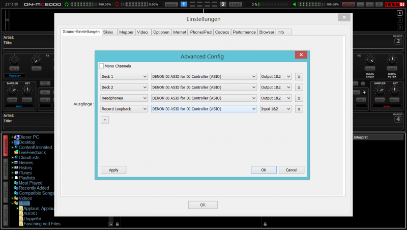 Stelle deine MC6000 MK2 in der Advanced Config ein.