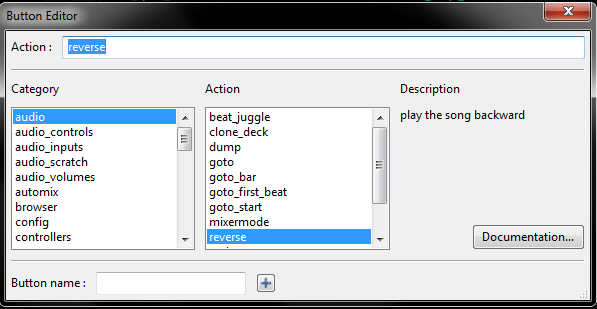 dans la fenêtre tapez reverse dans la barre "action" puis sélectionnez reverse et fermez la fenêtre, le bouton reverse et prêt à l'emploi.