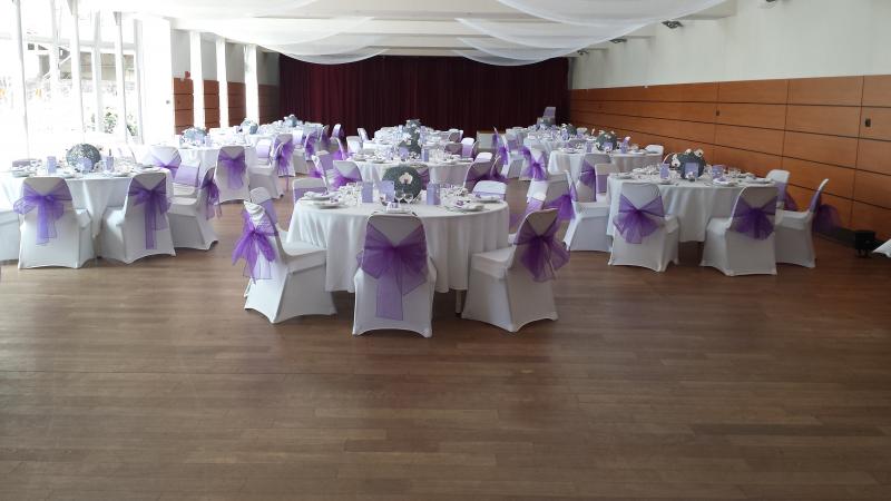 Voici 2 photos de mon installation pour representer ( actuellement je demande toujours de me reserver un rouleau de nappes pour coller aux couleurs des tables)