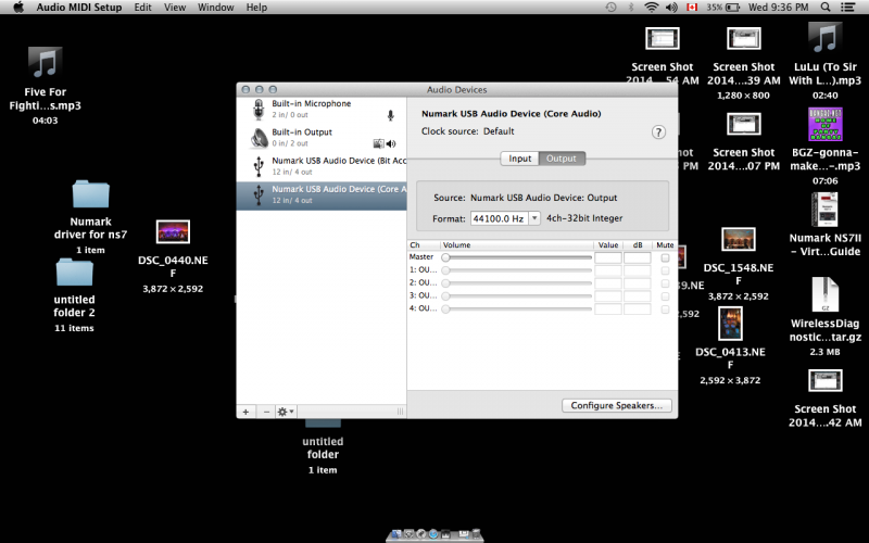 On my Macbook Air, running OS X 10.9.5 and the Numark NS7II drivers available for download at: http://www.numark.com/images/product_downloads/Numark_NS7II_Driver_3.2.0.zip