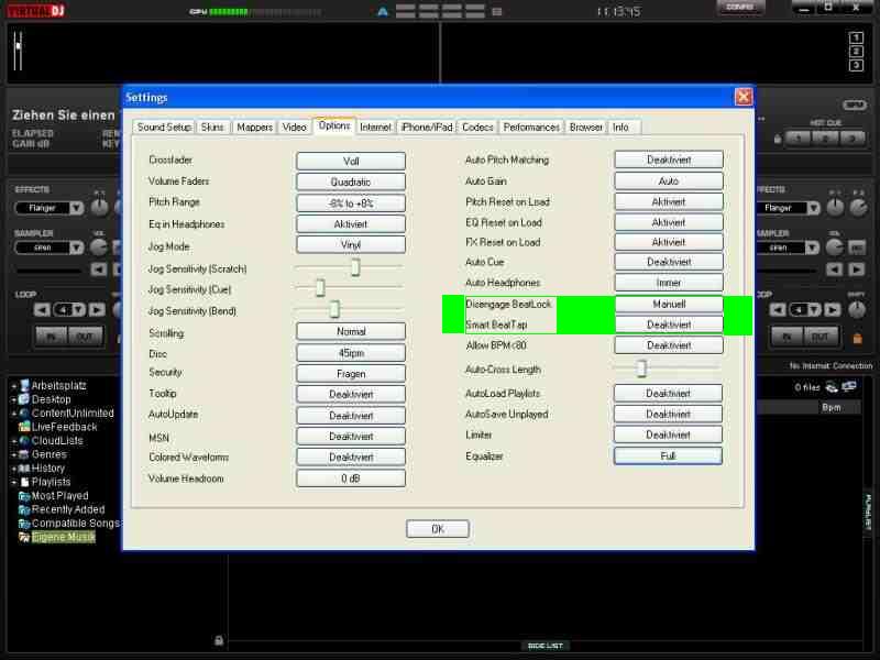 Disengage Beatlock= manual (nach euren eigenen Wünschen)