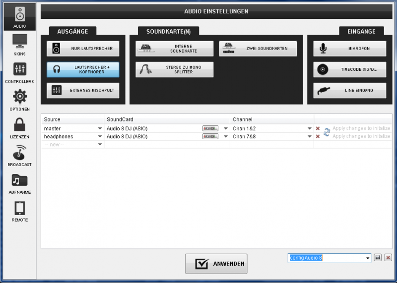 Und so sieht die Audio Config aus