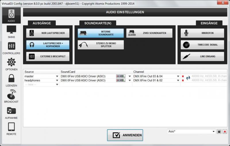 Deck 1: DMX6Fire Asio Driver Out 1&2