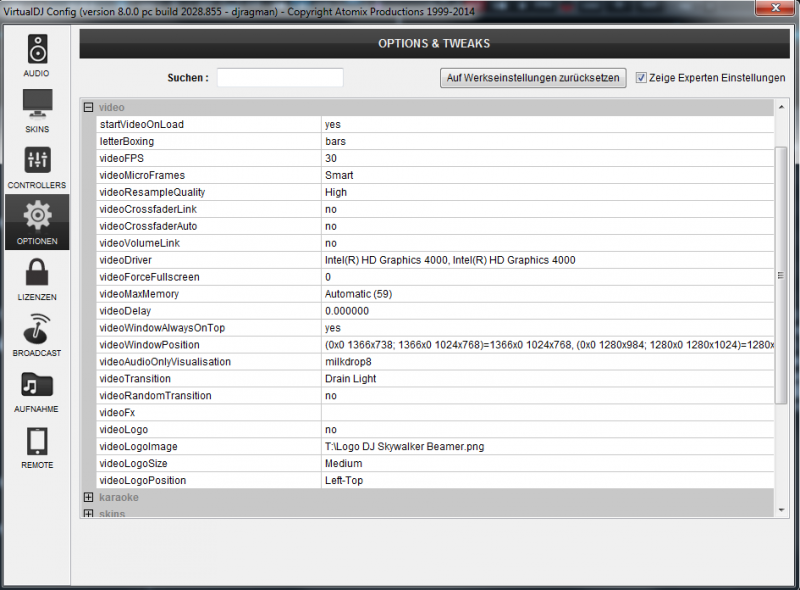 Versuche bitte mal deine Settings.xml im VDJ Rootfolder zu sichern, und danach zu löschen. Dann VDJ erneut starten. Und bitte nochmals testen. Augenmerk bitte auf videoWindowPosition. Die bei Dir eingetragenenWerte kommen mir nämlich etwas komisch vor.