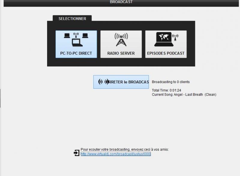 Comme je l'ai écrit plus haut, si ça fonctionne sur VirtualDJ Radio, ça devrait fonctionner PC to PC...