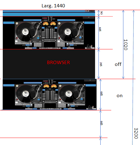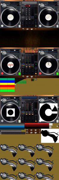 la skin se décompose en 3 images, la partie du haut est la vue de la skin dans le logiciel, ensuite c'est a vous de gérer se que vous voulez placé sur les autres vus, mais le principal est d'avoir toutes les touches fonctionnelles sous différents aspects (lumière allumé/éteinte, boutons enfoncés, vu mètre, etc) ensuite tout se fait avec le .xlm qui lui indiquera les différents boutons et fonctions en mouvement et l'interprété dans l'image original du haut par VirtualDj.