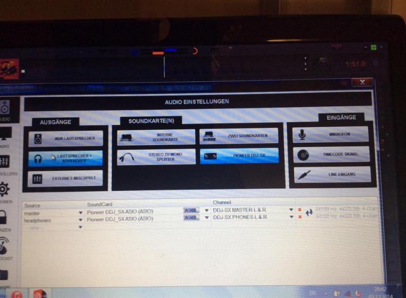 Kenne mich zwar nicht mit dem Pioneer DDJ SX aus aber versuche mal unter Ausgänge die Einstellung Externes Mischpult.