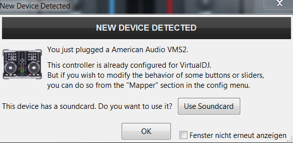 Normalerweise wenn der Controller auch eine eingebaute Soundkarte hat,und das erste mal angeschlossen wird und du VDJ 8 startest ,