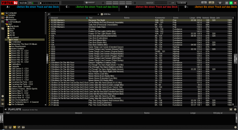 habe es jetzt so hinbekommen,allerdings sehe ich jetzt die Decks nicht mehr,kann man das so erstellen das alles fast normal mit decks und jogwheels ist ,nur eben dann unten noch die playlist ?
