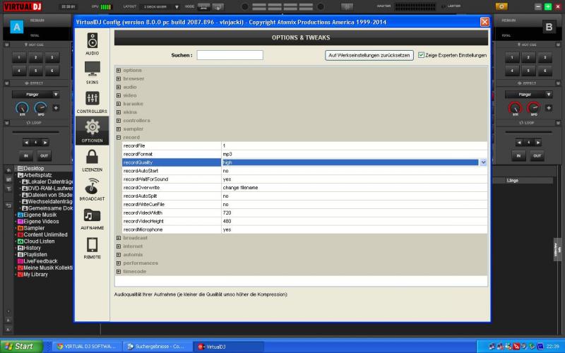 Bei VDJ7 konnte ich die Aufnahme-Qualität auswählen, bei der 8er Version finde ich das nicht.