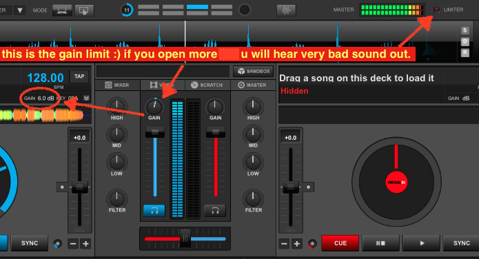 For further information about the limiter, please see our FAQ pages: http://www.virtualdj.com/wiki/FAQ.html