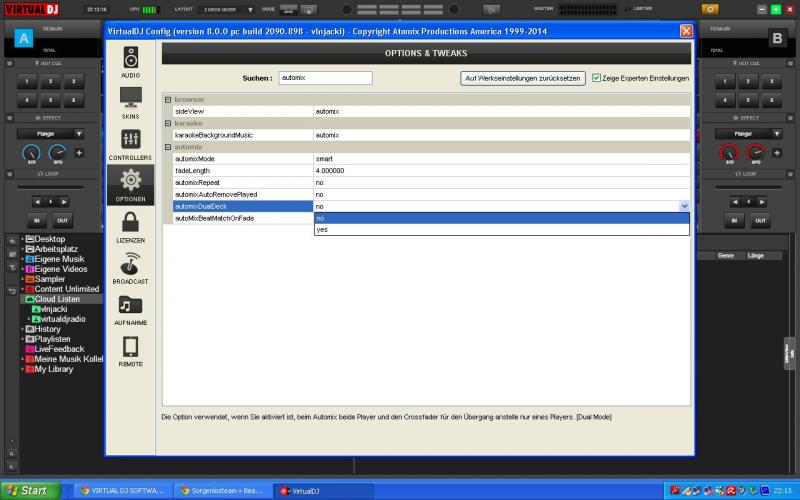 Letzteres funktioniert mit der VDJ 8 Pro Infinity und der Automix Dualdeck Funktion,