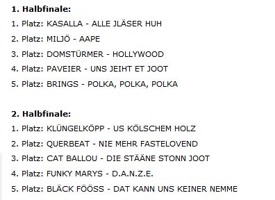 Hier mal was von Radio Köln "TOP Jeck" wie die Zuhörer abgestimmt haben: