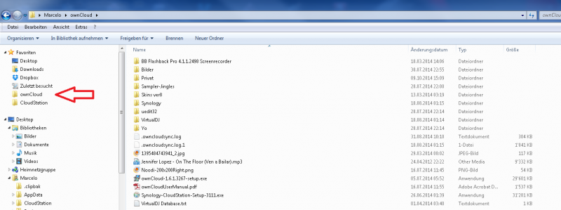 Siehst den Ordner Dropbox (grün heisst das die Daten aktuell sind) die ich für Webradio nutze. Desweiteren kannst noch CloudStation, MyCloudStation, owncloud und owncloud7 sehen, das sind meine privaten Clouds von meinen Synology NAS DS 1512+ und DS212+