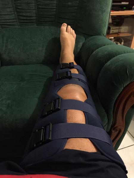 Sur un escabeau j'ai loupé une marche , mon genou à cogner contre l'arrête de la marche suivi d'une chute