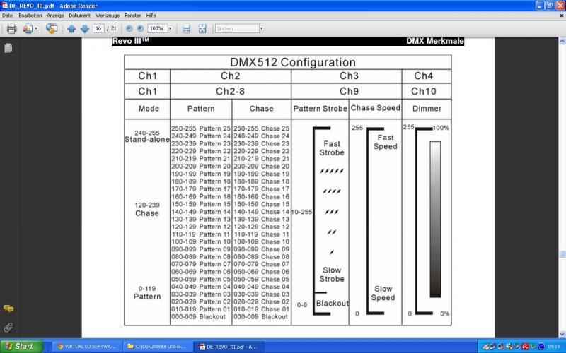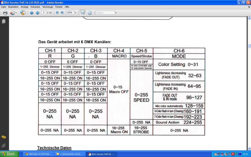 Damit das nicht zu unübersichtlich ist habe ich hier mal die DMX-kanäle deines ADJ Revo 3 im Bild,allerdings werde ich da auch nicht schlau raus wo da die Farben sind,etc.