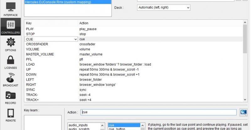 va dans config -> controleur, selectionne la RMX et regarde si dans la colonne Key est ecrit CUE et dans la case Action: cue
