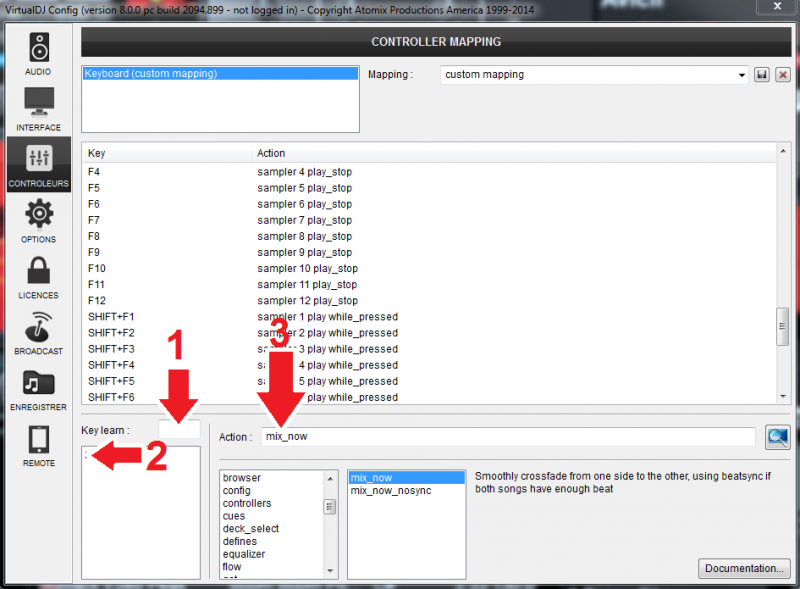 Mappez une touche par 'mix_now'