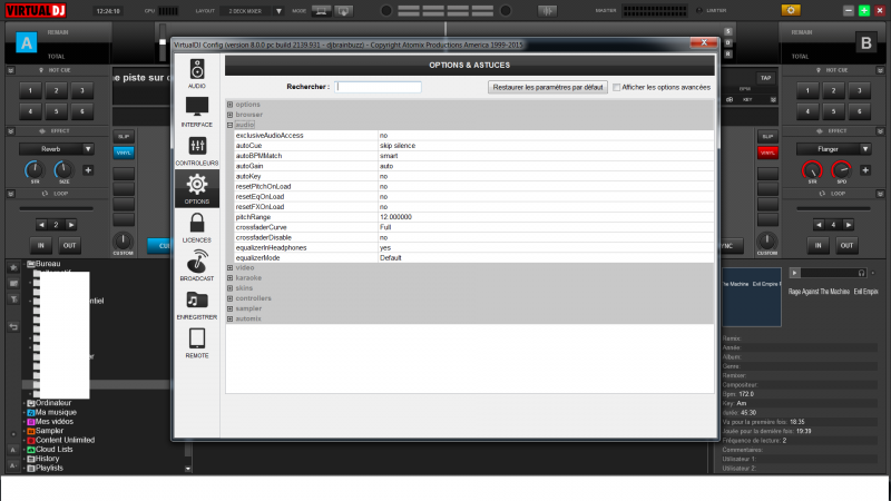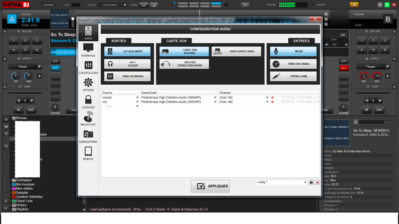 I think he means your audio setup, not the options, try clickin on the audio symbol(top left) and post another screenshot