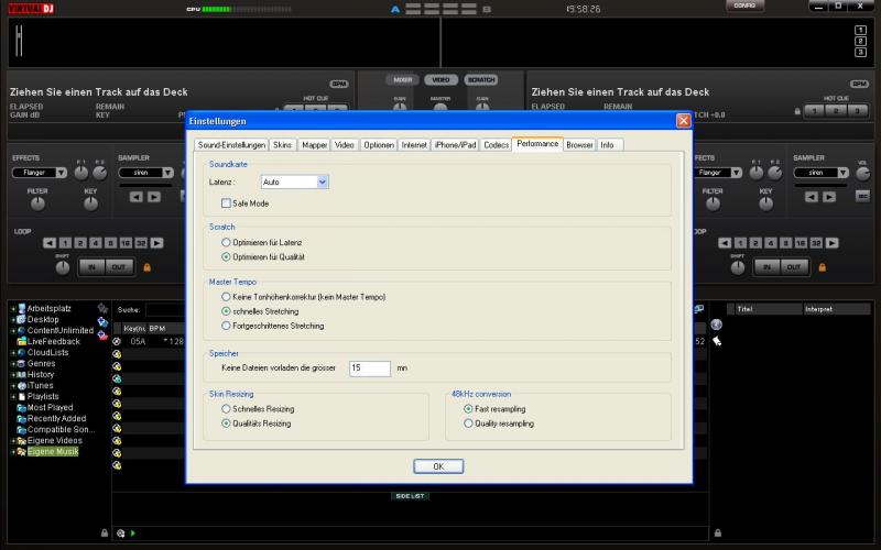 Unter VDJ 8 bei Settings/Optionen/Performance: