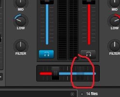 Der Ghostfader (heisst tatsächlich so) zeigt an wo sich der Fade in der Hardware befindet wenn z.B. durch den Sync Button Fader in der Software die Position ändern aber eben nicht an der Hardware.