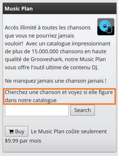 sur la page music plan il est écrit -> Cherchez une chanson et voyez si elle figure dans notre catalogue.