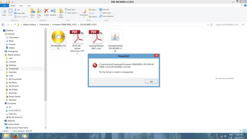Ok guys forgive the ignorance here (obvious rookie) but I am trying to get a setup for VDJ8 and Denon MC6000. Having config issues (attached screenshot). I have updated the ASIO drivers from the Denon site but am having issues mounting the Bin file for the Firmware update (attached) as it says that the file is not supported. I am wondering if I need to have this Firmware update for it t work properly. I have also attached the screenshot of the ASIO driver screen. I have my setup for 2 decks not 4, so channel 2 is setup to USB 1/2 and channel 3 setup to USB 3/4 and the mixing mode is INT mix. Cant get any sound to the single speaker I am using. Some direction would be much appreciated. .png)