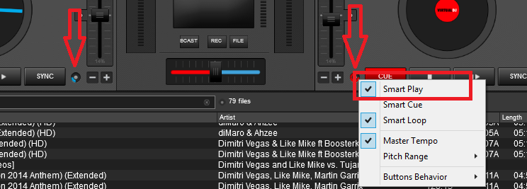 schau mal bitte in der V8 nach ob du autoBPMMatch und smartPlay aktiv hast.