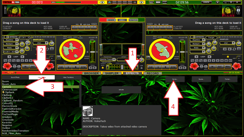 Pour l'enregistrement vidéo, vous n'avez qu'à utiliser le pluggin camera de vdj avec votre webcam