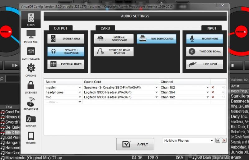 I'm sure there's a way to configure the audio settings to assign the mic channel to be sent to the headphones so that I could lower the headphone volume on VDJ8, enable the mic, speak and still hear the track playing in the master channel in the background without hearing my own voice...but I don't know exactly how that would be done.