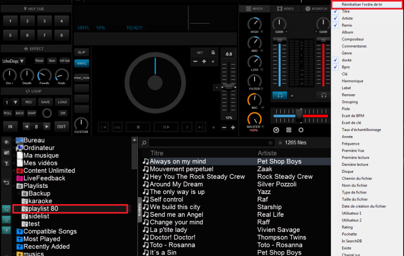Dans les playlists on peut aussi réinitialiser l'ordre de tri