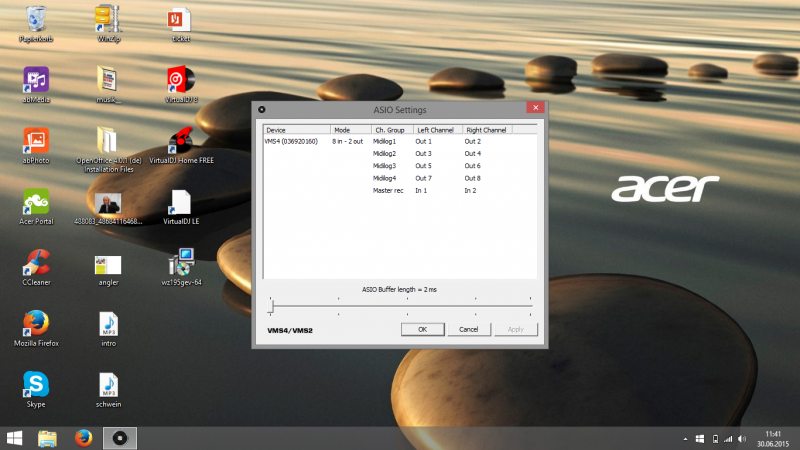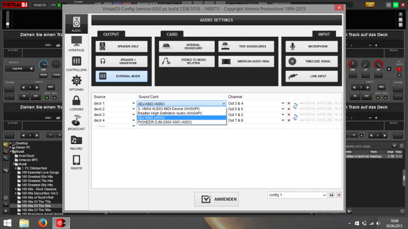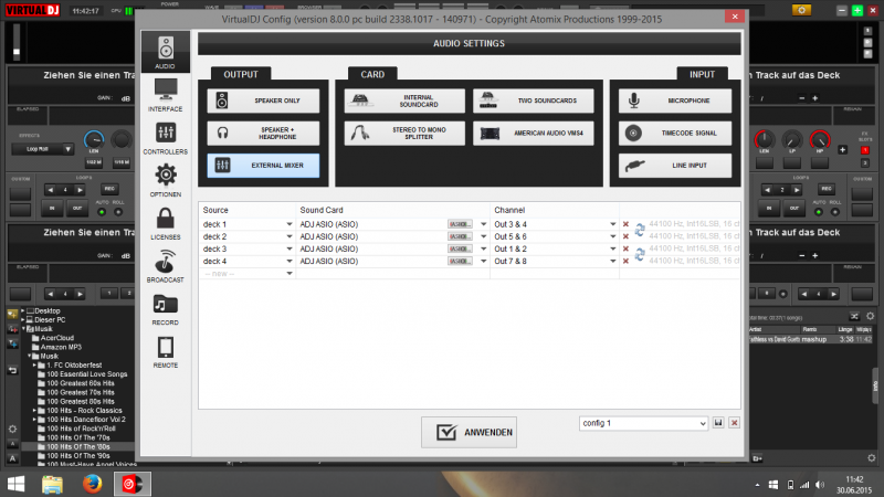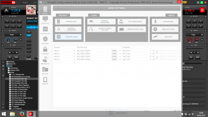 Mach mal bitte einen Screenshot vom Asio Panel unter Windows und deiner Soundconfig in VirtualDJ.