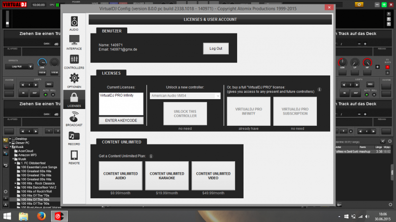 Hab ja versucht meine V( version zu nutzen .... ging nicht . also die konsole laut serien nummer freischalten und schwups war nur die V7 version als LE variante vorhanden. dann upgrade auf höherwertige Version und trotzdem ging nix....... Schade eigentlich...hat spaß gemacht mit VDJ.....