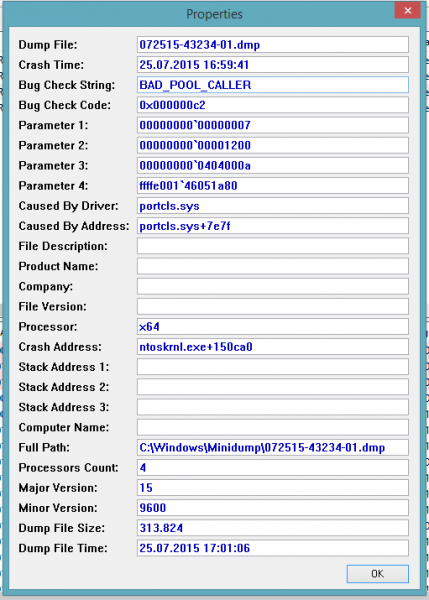 auf einmal bekomme ich seit heute immer einen Bluescreen "Bad_Pool_Caller", wenn ich versuche meinen X1600 zu nutzen. Der Bluescreen wird immer durch unterschiedliche Treiber verursacht.
