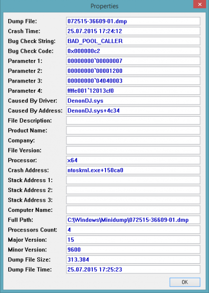 Scheint ein reines Treiberproblem zu sein. Ist allerdings schwierig zu sagen welcher genau, ich Tippe mal mit auf den Denon Treiber.