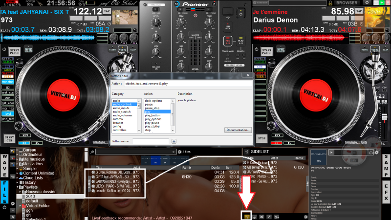 Si ça ne fonctionne toujours pas, c'est PhantomDeejay qui avait raison, fonction impossible, voir TOPIC: IS IT POSSIBLE IN VDJ8 TO MAKE A SKIN BUTTON TO LOAD (AND PLAY, AND STOP) A CERTAIN PLAYLIST?