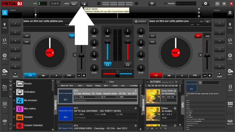 utilisez le skin tablette intégré à vdj8