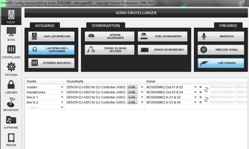wenn du in der config einfach bei Soundkarten einfach auf Denon MC 6000 Mk 2 klickst, sollte eigentlich alles schon passend eingstellt werden. Oder klappt das nicht bei dir?